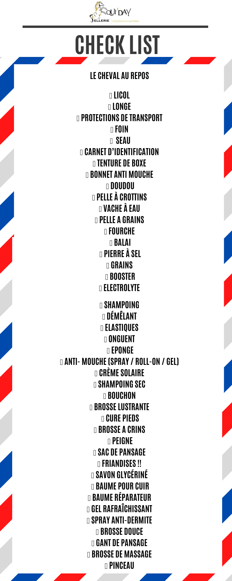 Lamotte Beuvron, Le Mans, Fontainebleau, à cheval comme à poney, la saison des championnats de France ouvre ses portes à tous les cavaliers passionnés d'équitation et de sport. Afin de préparer au mieux cette échéance la TEAM EQUI'DAY vous a préparé une super check-list pour briller après cette saison de préparation à l'événement le plus important de l'année.